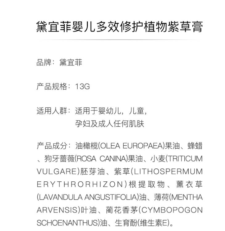 【产品名称】:黛宜菲婴儿多效修护植物紫草膏